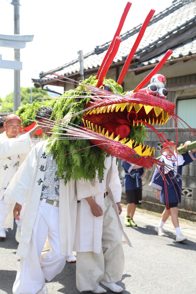 蛇体は、地区の子どもたちが竹、わら、シダなどで作成。ドライアイスを使って口から煙を吐くように見える工夫をするなど、個性豊かな7体を披露しました。