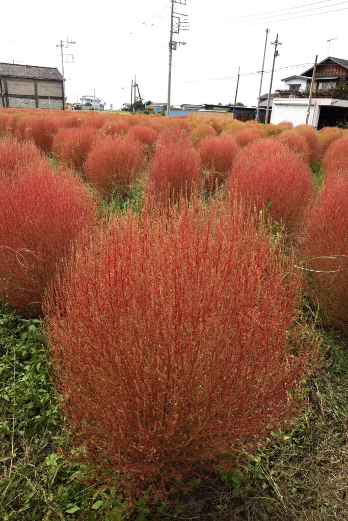 JAおやま管内の小山市豊田地区では、農地の景観維持のために、コキアを植えて地域住民の他、遠方から訪れる人たちを和ませています。同地区の自治会で構成する「飾り馬の里」が、国の多面的機能支払い交付金を活用して毎年、遊休地にコキアを植えて農地の景観維持に努めています。
