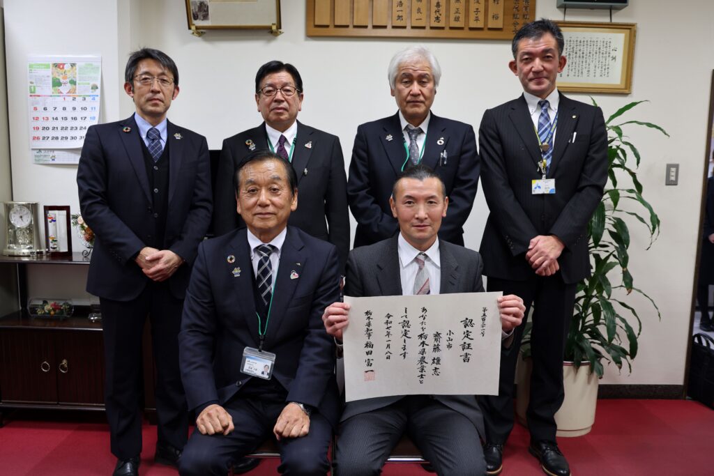 小山市の齋藤雄志さんJAおやまは1月8日、JAおやまを訪れ、2024年度栃木県農業士に認定されたことを報告しました。齋藤さんは、肥育経営から繁殖・肥育の一貫経営に同市でもいち早く始め、現在は繁殖雌牛と肥育牛合わせてとちぎ和牛235頭を飼養管理しています。2019年5月には株式会社サイトウ農場として法人化しました。