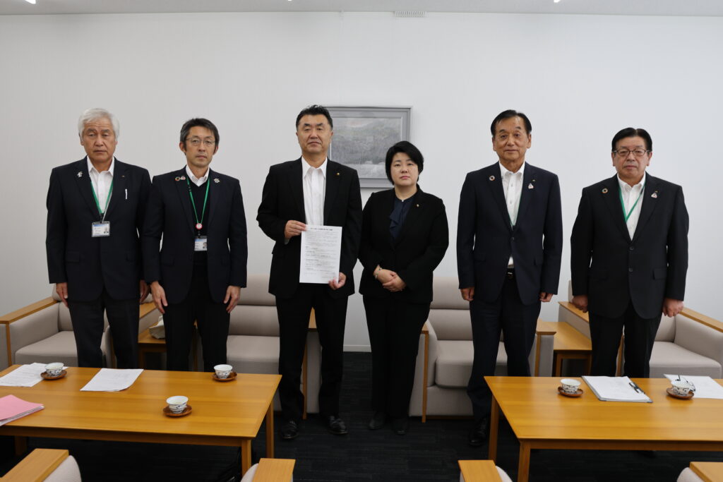 要請書には①廃プラスチック処分助成の拡充②病害虫防除補助金の維持③認定農業者・集落営農組織など担い手への育成補助金の維持・拡充④新規就農塾推進協議会の運営費負担⑤生産資材・燃油・飼料における価格高騰対策―などを盛り込みました。