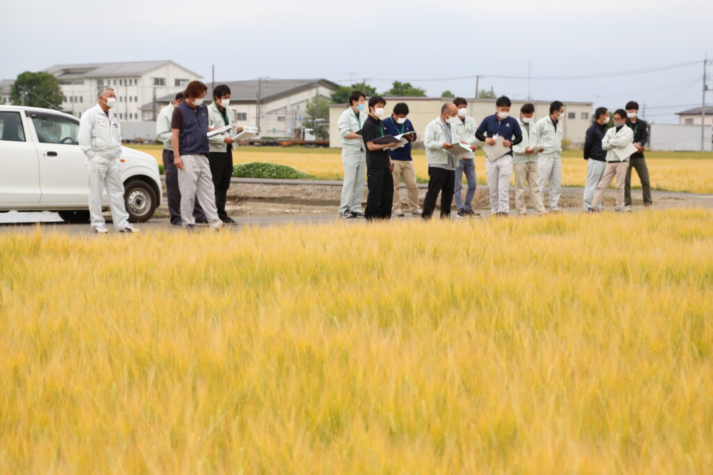 適期収穫で良質めざせ ビール大麦圃場確認