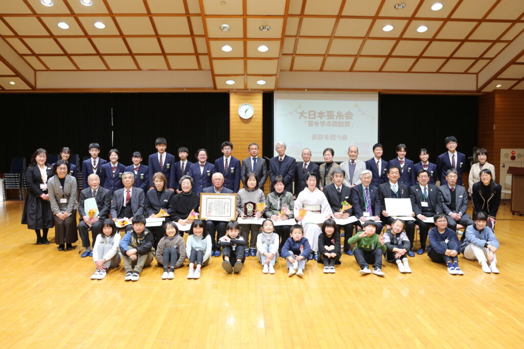小山市立絹義務教育学校は3月8日、大日本蚕糸会表彰を祝う会を絹義務教育学校で行いました。同校は、長年にわたり蚕糸と絹文化の継承に貢献したとして、大日本蚕糸会から「蚕を学ぶ奨励賞」を受賞。また、栃木県連合教育会から「栃木県教育賞」、小山市教育委員会から「教育文化保健体育功労者表彰優良校」として表彰を受けました。