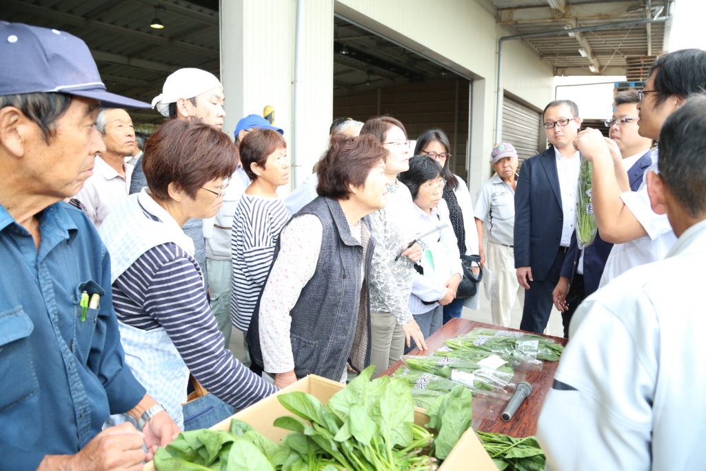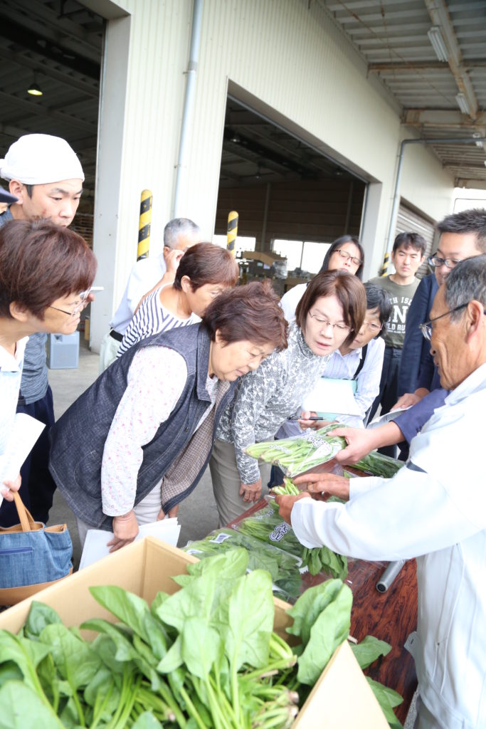 栃木県のJAおやまほうれん草部会は10月上旬、下野市のJAおやま北部集出荷所で目ぞろえ会を開きました。部会員、関係者ら約60人が参加し、現物を使って選別基準を確認しました。