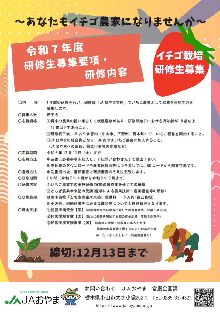 イチゴ栽培研修生募集