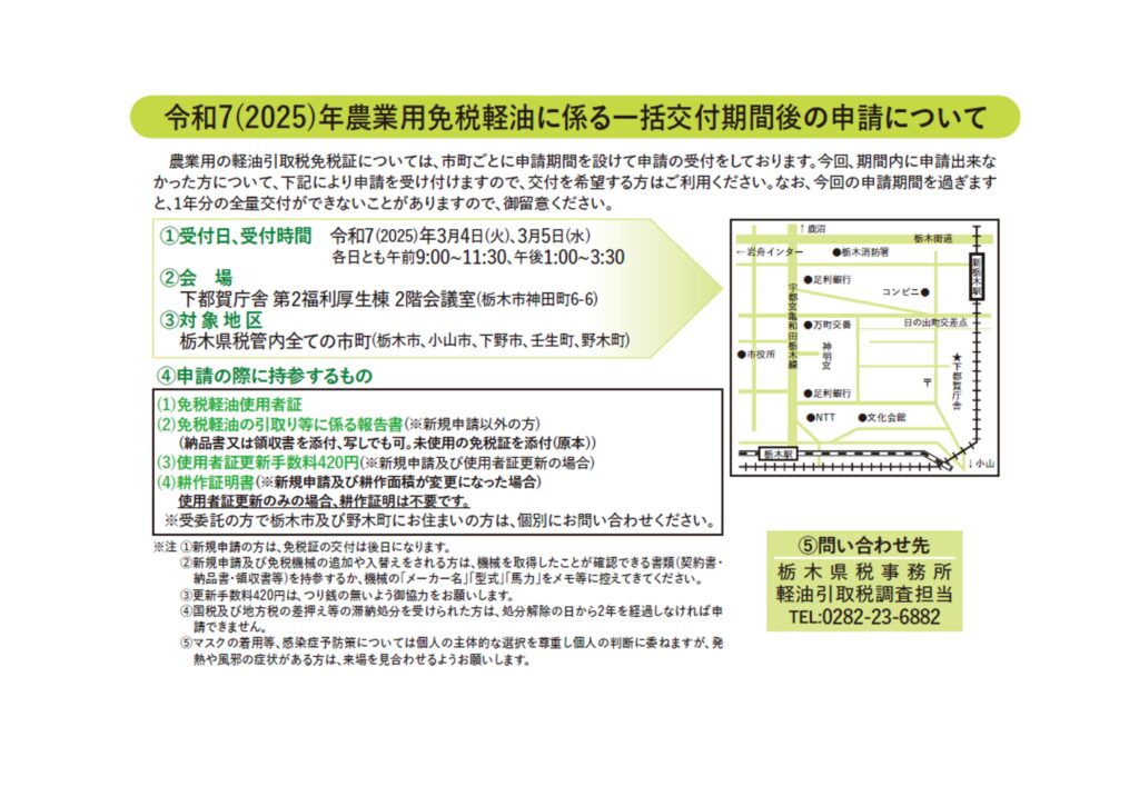 <令和7(2025)年農業用免税軽油に係る一括交付期間後の申請について