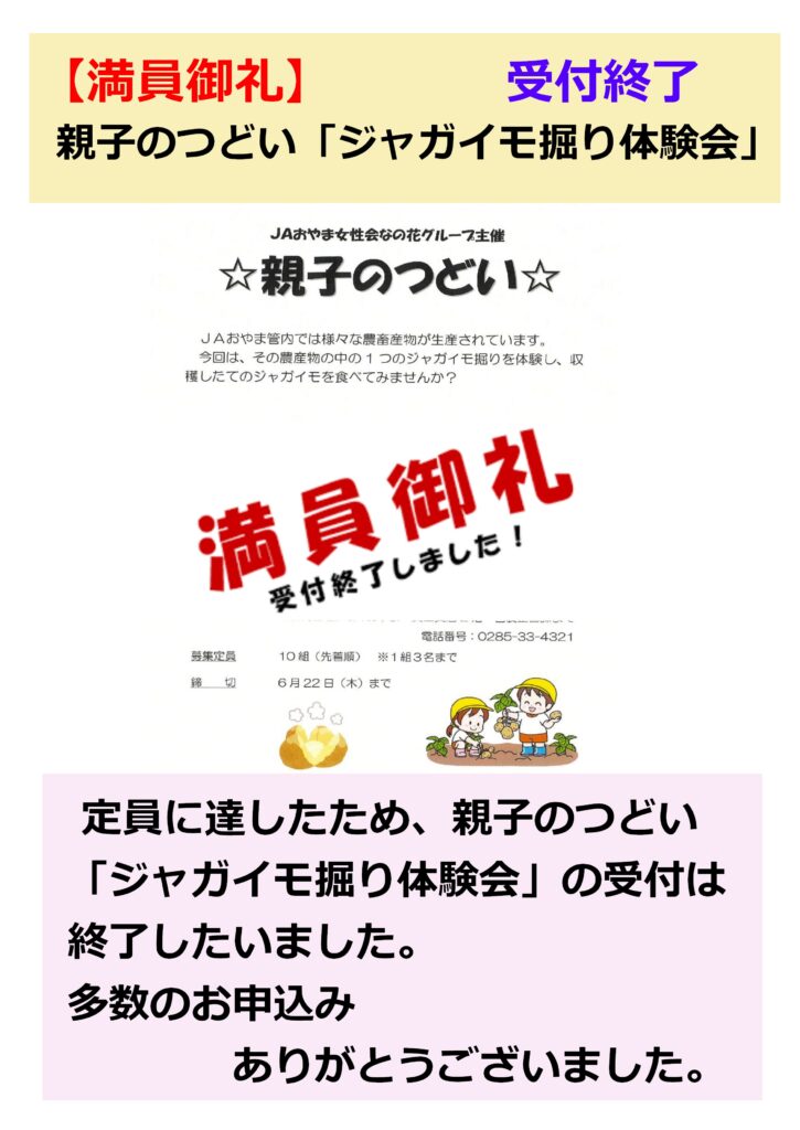 満員御礼:親子のつどい「ジャガイモ掘り体験会」受付終了