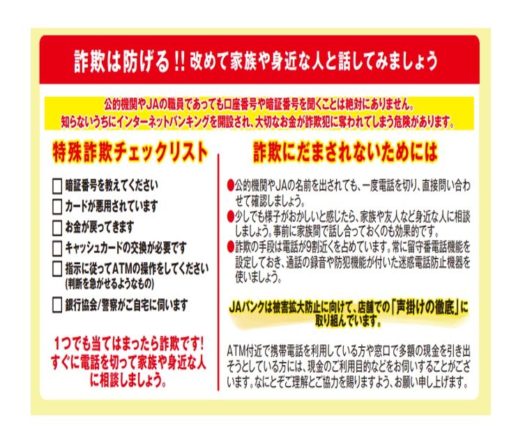 詐欺は防げる!改めて家族や身近な人と話してみましょう