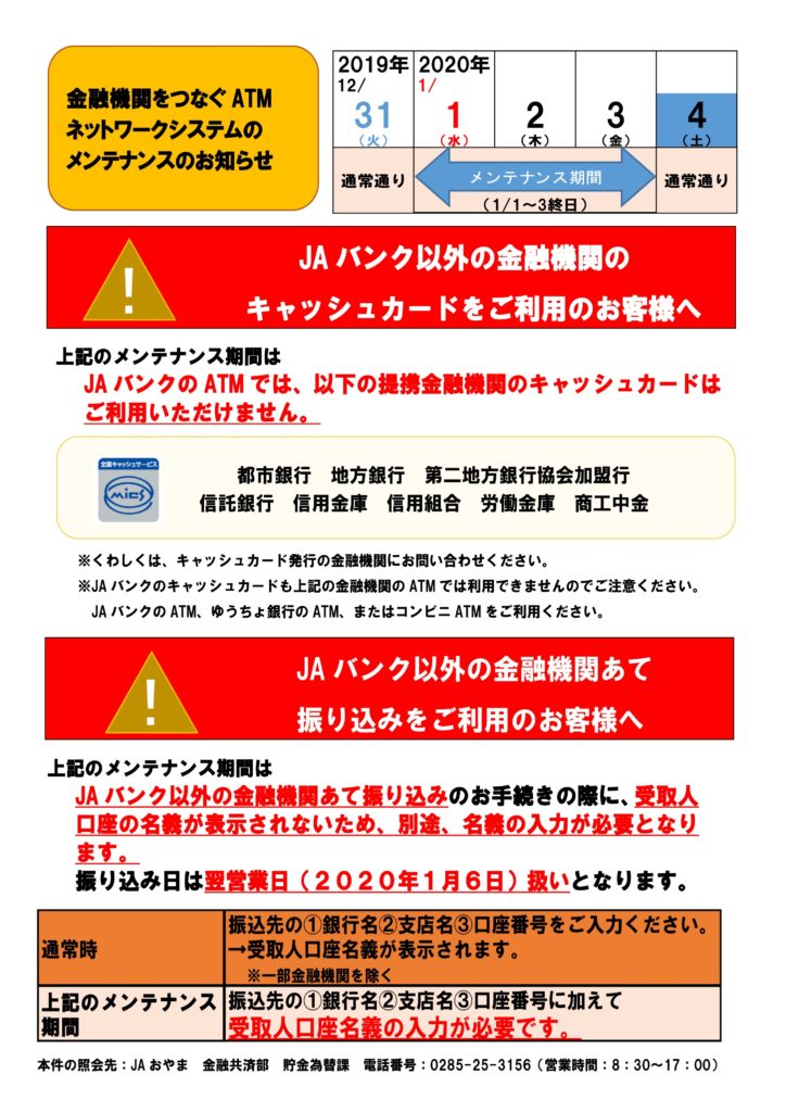 <金融機関をつなぐATMネットワークシステムのメンテナンスのお知らせ