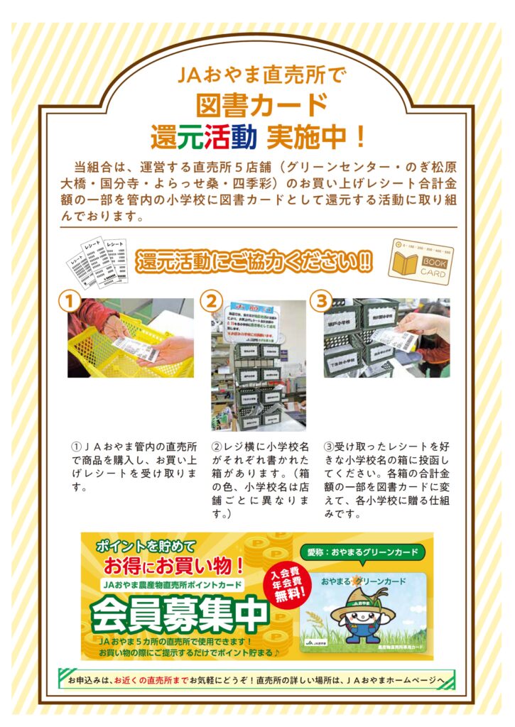 JAおやま直売所で図書カード還元活動実施中!&ポイントカード会員募集中!!