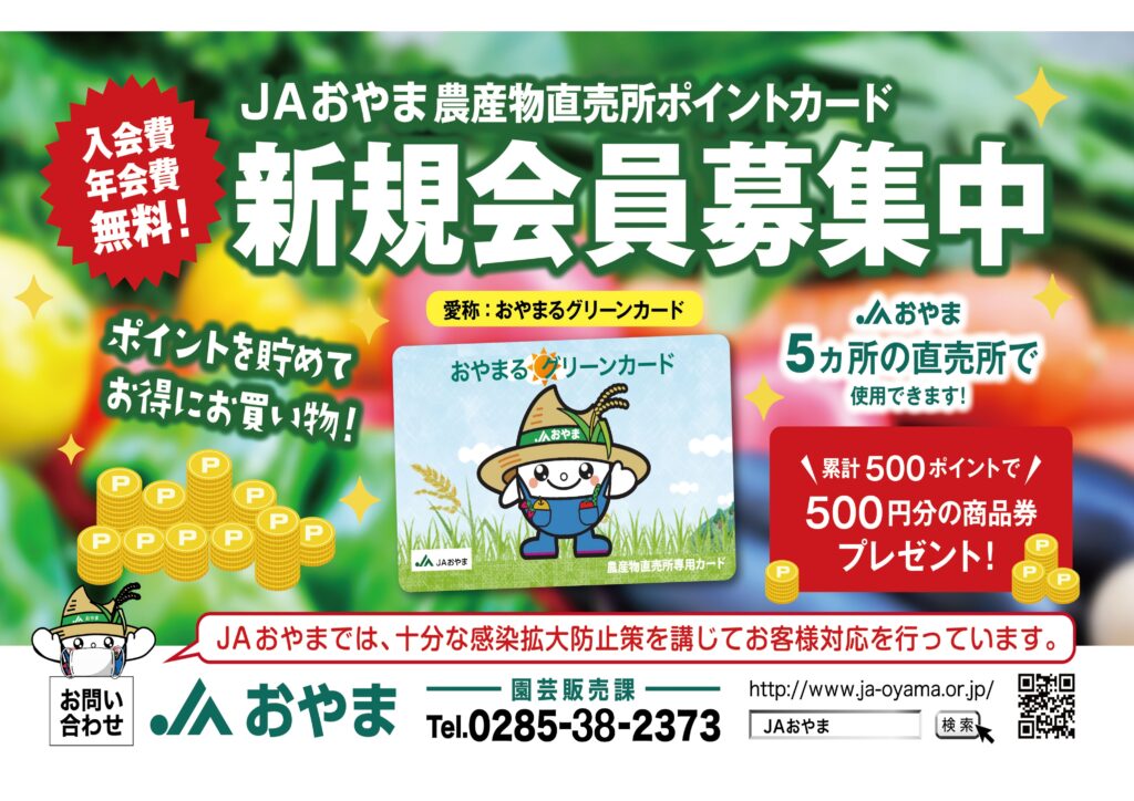 <JAおやま農産物直売所ポイントカード 新規会員募集中!!!