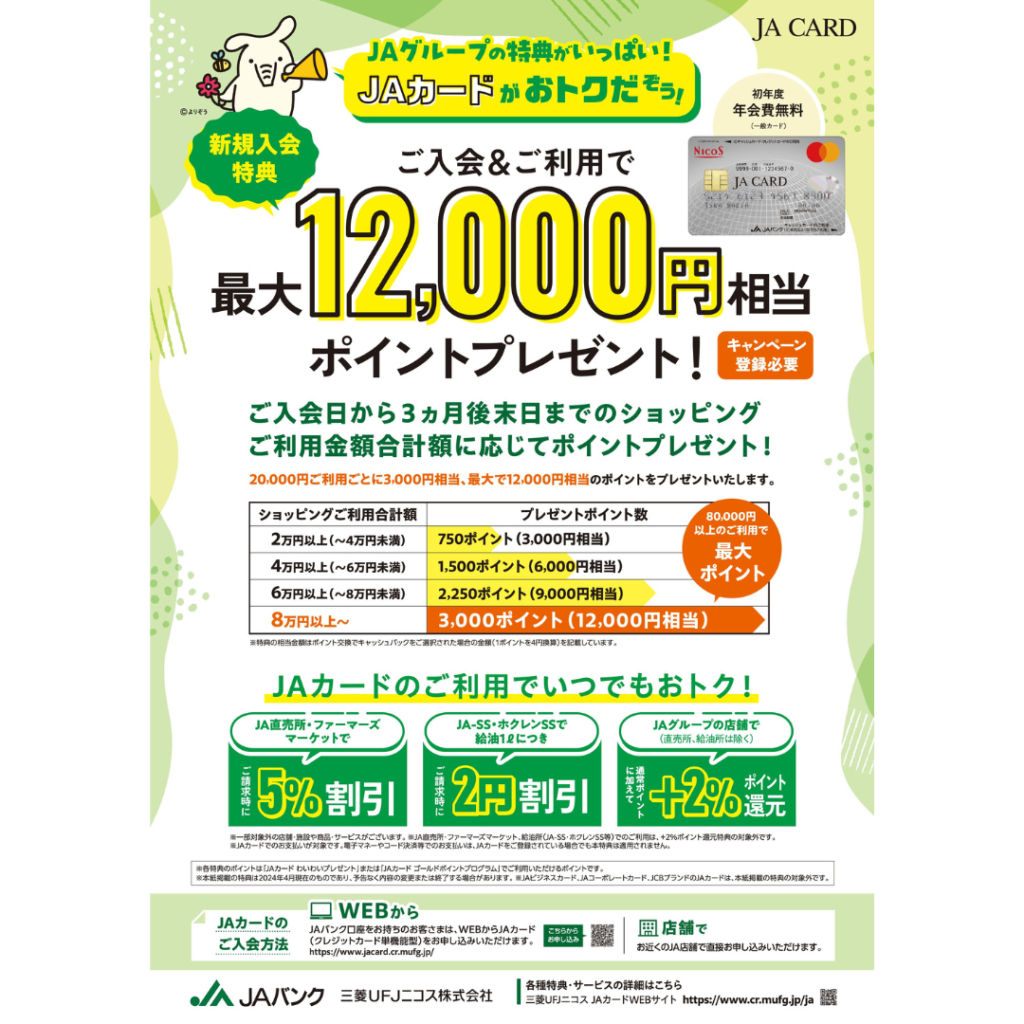 JAグループの特典がいっぱい!JAカードがおトクだぞう!