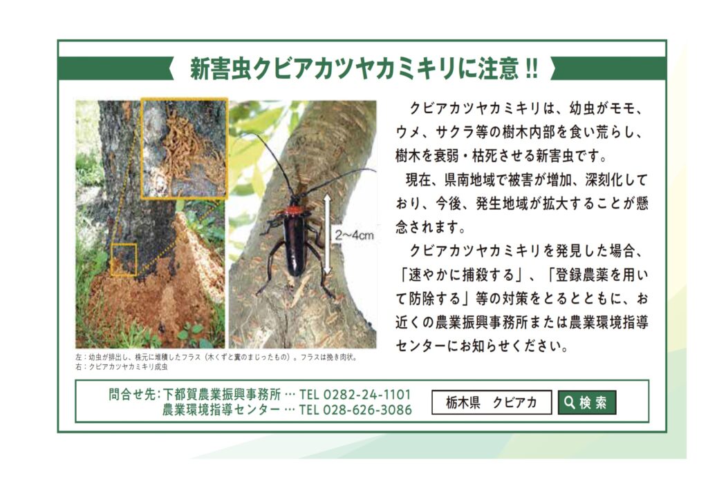 新害虫クビアカツヤカミキリに注意!!