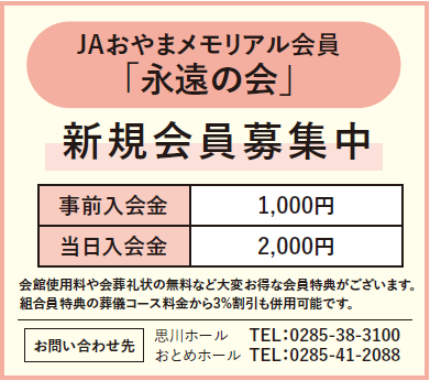 JAおやまメモリアル会員「永遠の会」新規会員募集中