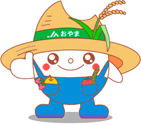 ボクの夢は、JAおやまの農産物の魅力を全国に広めること!ボクのポケットには、大好きなキュウリ、トマト、イチゴ、梨などJAおやまの農産物がいっぱいなんだ!ボクの大好きな農産物をぜひみんなも食べてみてネ。お友だちのかかしくんとも田んぼの見回りにも行くんだよ。もしかすると、おやまに遊びに来てくれたら、ボクと会えるかもしれないヨ。魅力いっぱいのJAおやまのこと、これからもよろしくお願いします♪