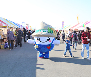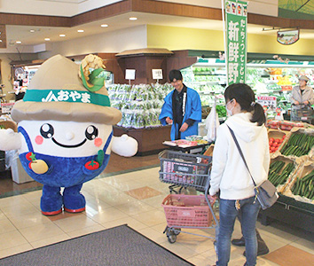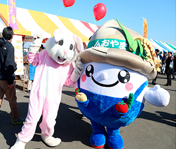 農業祭に小山市地域応援キャラクター「ふぅにゃ&むむにゃ」と組合長!