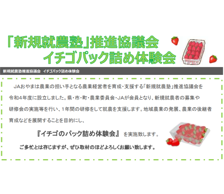 「新規就農塾」推進協議会 イチゴパック詰め体験会