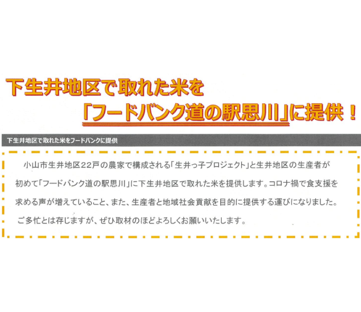 下生井地区で取れた米を「フードバンク道の駅思川」に提供!