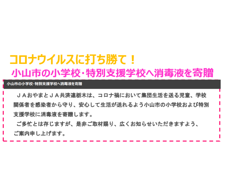 小山市の小学校・特別支援学校へ消毒液を寄贈