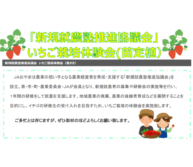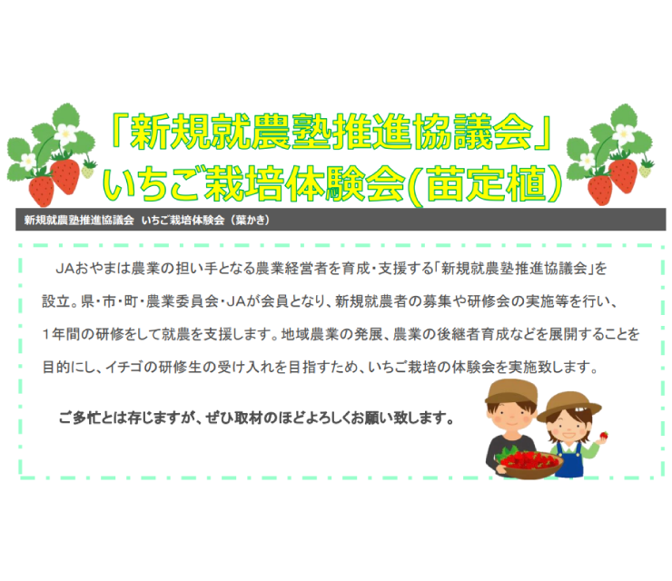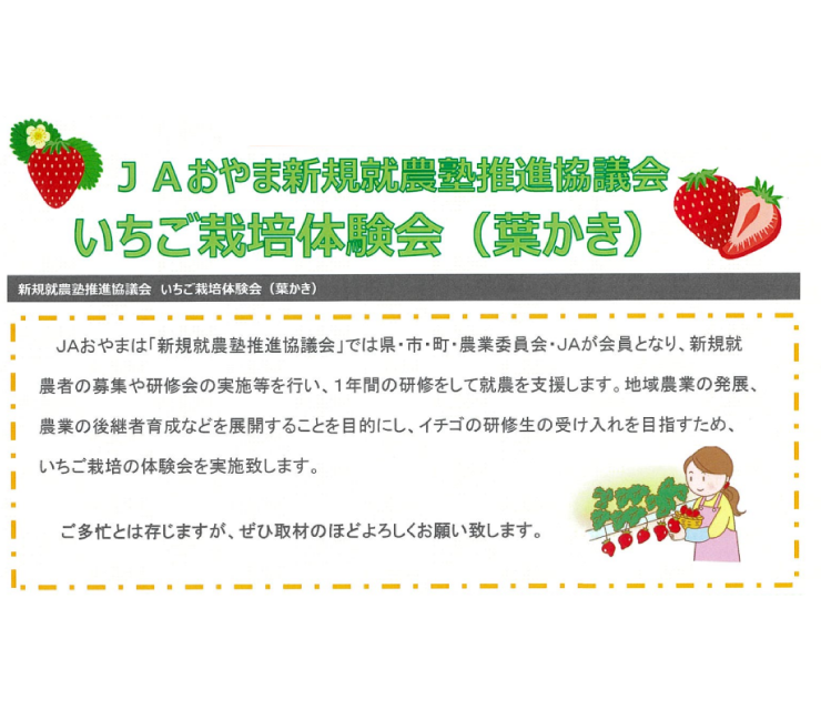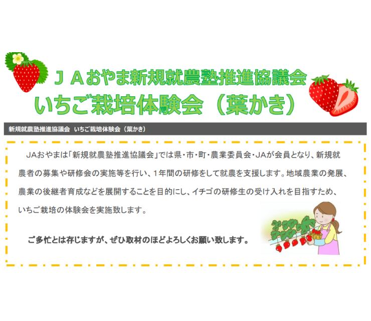 JAおやま新規就農塾推進協議会 いちご栽培体験会(葉かき)