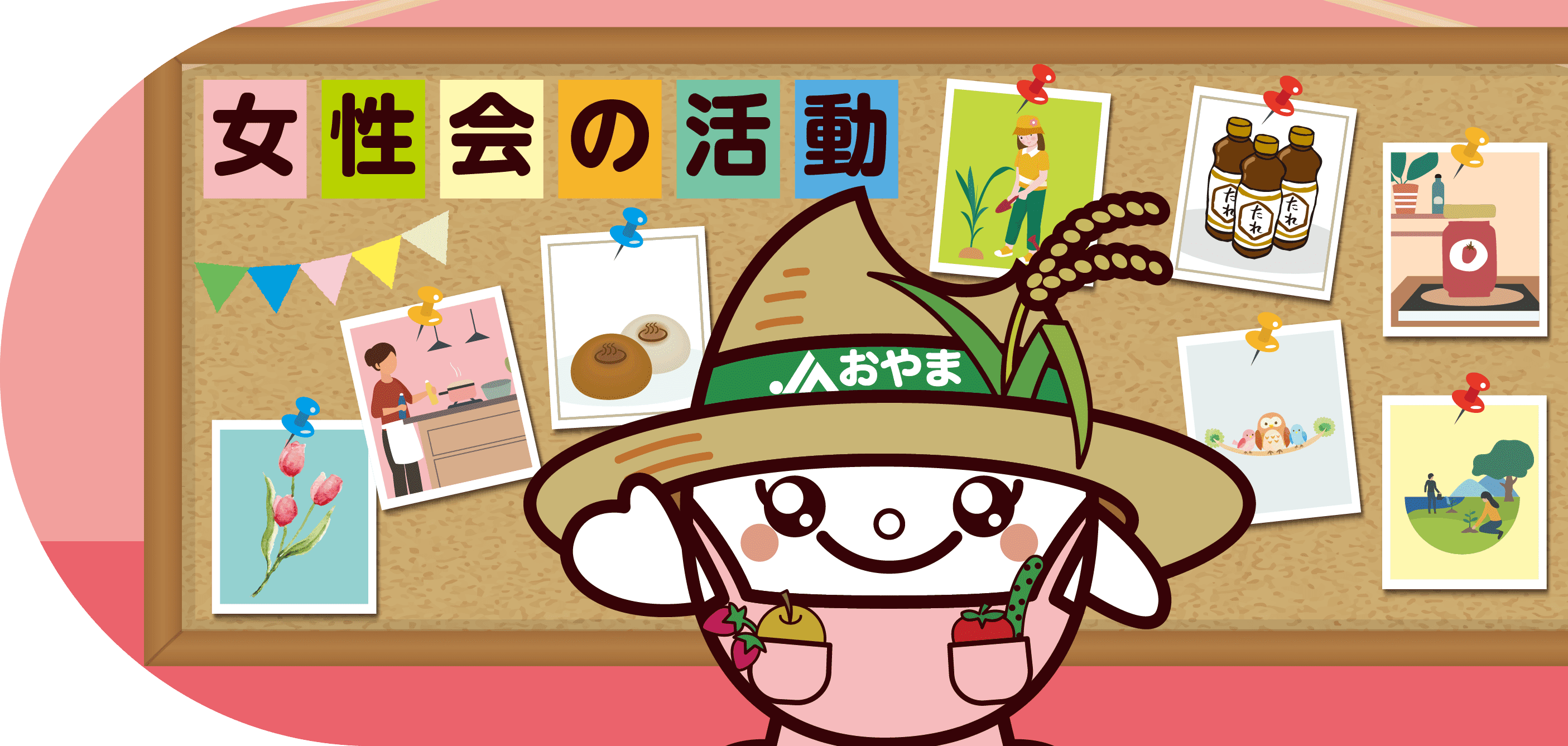 women's group女性会とは、JAおやま管内(小山市、下野市(旧石橋町・旧国分寺)、野木町)に住む女性で、JAや女性会活動に興味を持ち、共に活動する仲間の集まりをいいます。
