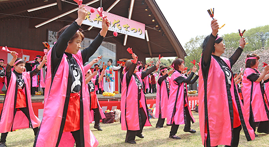 天平の丘花まつりやおやまサマーフェスティバルなど各種イベントでよさこい踊りを披露しています。多くの人に元気と笑顔をお届けしています。