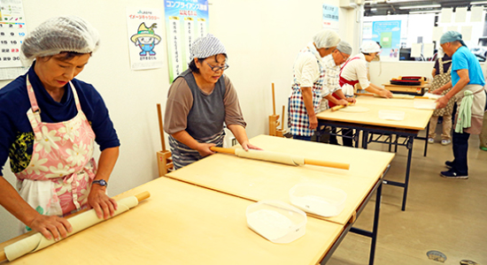 本格的な打ち方を習得するための講習会を行っています。水加減や力加減、包丁の入れ方を講師に一から学べるとあって人気の催しです。